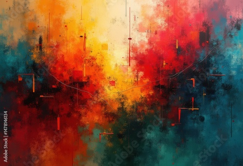 vibrant abstract shapes textured canvas art colorful design creative expression modern artwork, pattern, textures, artistic, graphic, composition, geometry