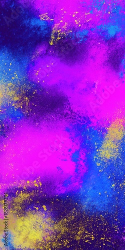 Vibrant abstract spray paint with neon pink, blue, and yellow splashes