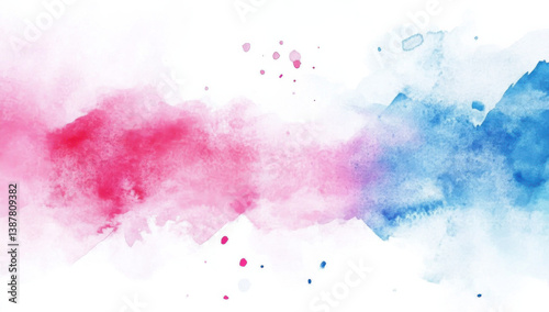 vibrant abstract watercolor painting featuring blend of pink and blue hues, creating dynamic and artistic visual effect. soft brush strokes and splashes evoke sense of creativity and fluidity