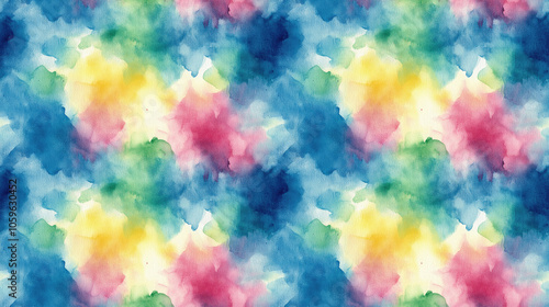 Vibrant abstract watercolor seamless pattern featuring vivid blue magenta green and yellow perfect for textiles and graphic design
