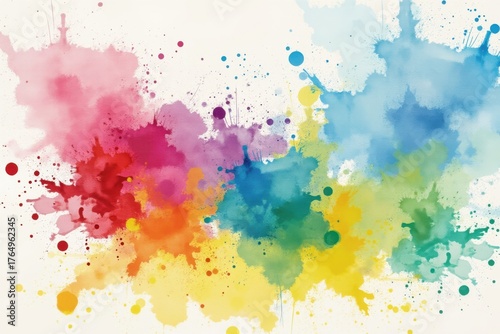 Vibrant abstract watercolor splashes and splatters in rainbow colors