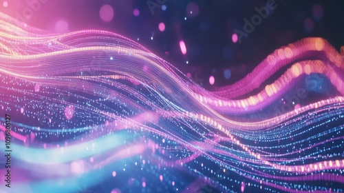 Vibrant abstract waves of light in pink, blue, and purple, creating a mesmerizing digital background perfect for technology and art projects.