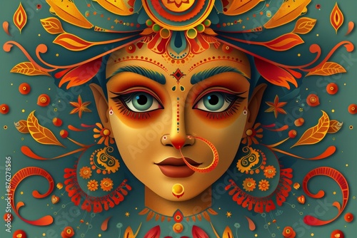 Vibrant and colorful illustration of a woman's face with intricate patterns.