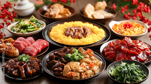 Vibrant and Diverse Traditional Chinese Cuisine Spread for Celebratory Feast : Generative AI
