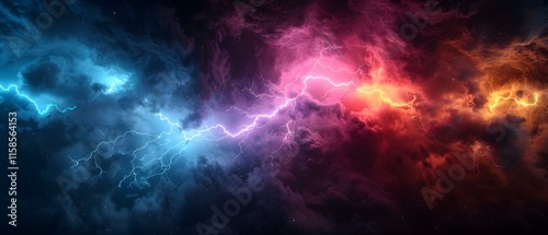 Vibrant and Dramatic Lightning Strikes Across Colorful Stormy Clouds in Dynamic Night Sky
