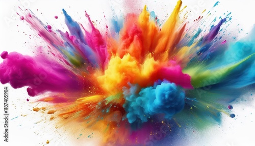 Vibrant and Festive Rainbow Holi Paint Explosion on White Backdrop A Jubilant Celebration of Colors