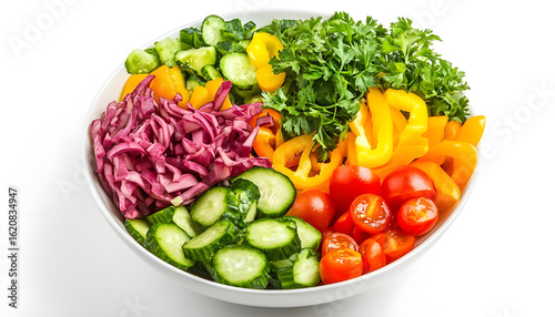 Vibrant and Fresh Salad Bowl with Colorful Vegetables on Isolated White Background