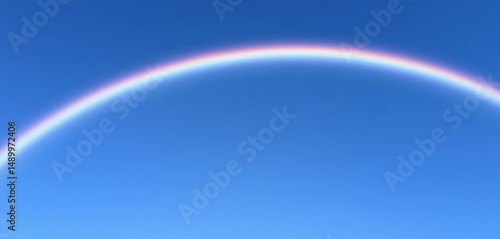 Vibrant arc of colors spanning a clear blue sky , full, rainbow colors