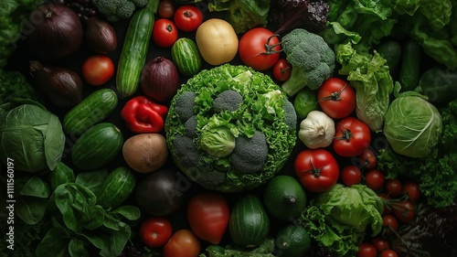 vibrant arrangement of fresh veggies encircling an Earth-shaped globe