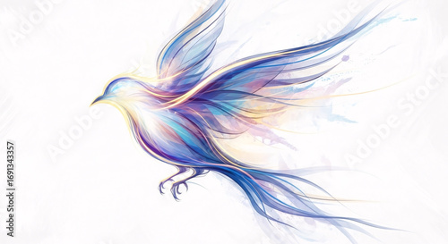 Vibrant artistic bird of light soaring with flowing colorful wings, symbolizing freedom and hope
