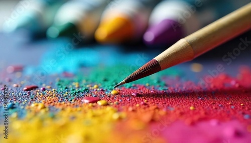 Vibrant Artists Palette Close-up of Paintbrushes, Acrylic Paints, and Canvas, Evoking Creativity and Artistic Inspiration