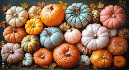Vibrant Assorted Pumpkins in Various Shapes and Colors for Autumn Harvest Decoration