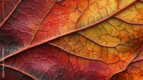 Vibrant autumn hues paint a tapestry of red, orange, brown, and gold on a dogwood leaf. The intricate veins weave patterns across its surface, creating a captivating close-up.