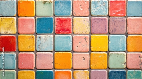 Vibrant background with a tiled wall in bright, cheerful colors, ideal for lively and playful designs.