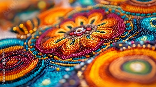 Vibrant Beaded Artwork: A Close-Up of Intricate Floral Designs