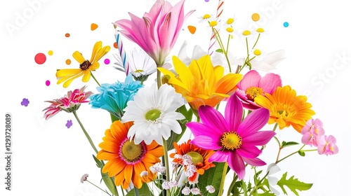 Vibrant Birthday Bouquet with Fresh Flowers, Joyful Floral Arrangement for Celebrations, Party Decorations, Festive Greeting Card Background