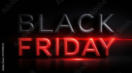 Vibrant Black Friday Text Illuminated Against a Dark Background Showcasing a Festive Shopping Atmosphere
