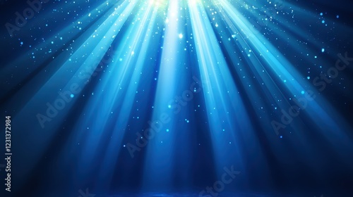 Vibrant blue abstract artwork with flowing patterns and luminous effects in a dark background