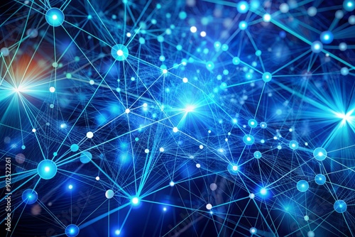 Vibrant blue abstract pattern featuring dynamic dots and lines representing complex neural networks, data flow, and supercomputing connections in futuristic tech backgrounds.