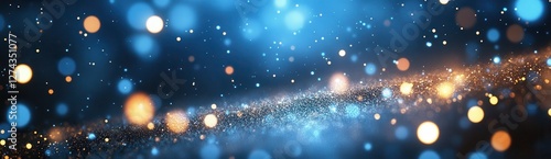 Vibrant Blue and Gold Bokeh Abstract Background with Glowing Lights and Sparkling Particles for Creative and Artistic Designs