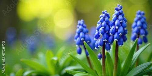 Vibrant Blue Flowers Blooming in a Lush Spring Meadow, a Close-Up View of Delicate Petals and Vivid Green Foliage, Representing the Beauty and Renewal of Nature's Seasonal Cycle