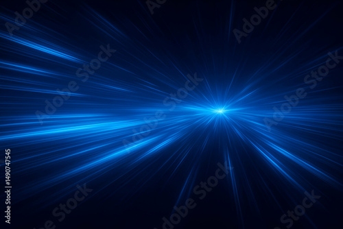 Vibrant blue light rays in dark background.