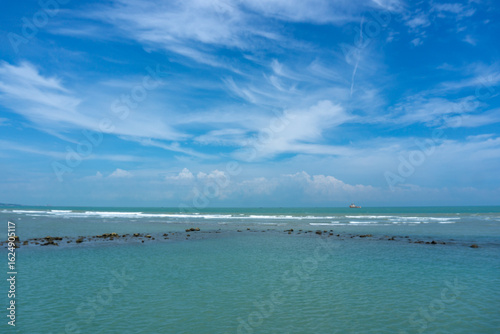 ocean, sea, blue, water, rock, coral, outcrop, island, coast, coastal, shoreline, beach, sky, clear, sunny, sun, daylight, bright, summer, nature, natural, landscape, scenic, view, beautiful, calm, peaceful, serene, tranquil, untouched, pristine, tropical, paradise, vacation, travel, tour tourism, destination, indonesia, southeast asia, environment, geology, marin, seascape