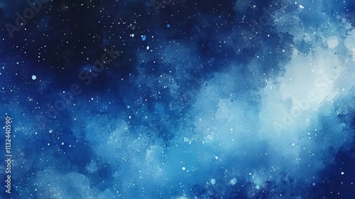 Vibrant blue watercolor space background illustration painting featuring nebulas, stars, and abstract cosmic design