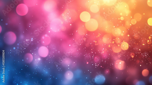 Vibrant bokeh background with softly blurred lights in pink, orange, and blue hues, creating dreamy atmosphere. Perfect for festive or artistic themes