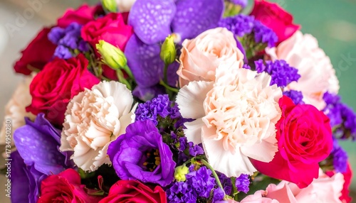 flower, bouquet, rose, carnation, orchid, purple, pink, red, arrangement, spring, summer, floral, pretty, beautiful, colourful, fresh, delicate, nature, gift, celebration, tender, closeup, detail, botanical