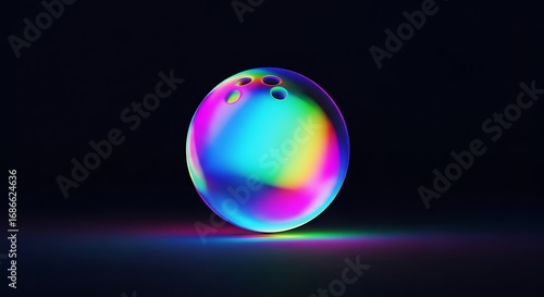 Vibrant bowling ball on dark surface with luminous color gradients
