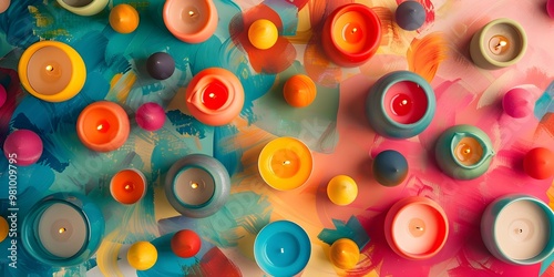 Vibrant Candle Holders Arranged in Pattern for Product Photography