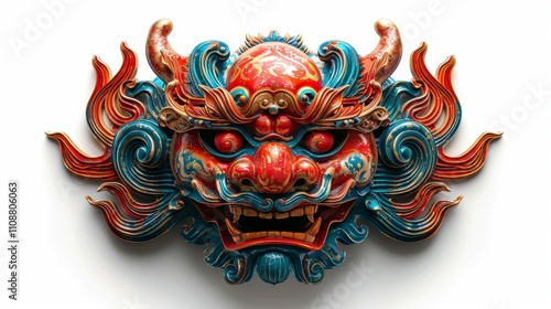 Vibrant Chinese New Year parade mask, isolate on white background,