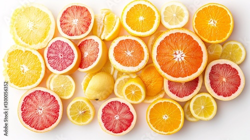 Vibrant Citrus Slices Composition on White Background