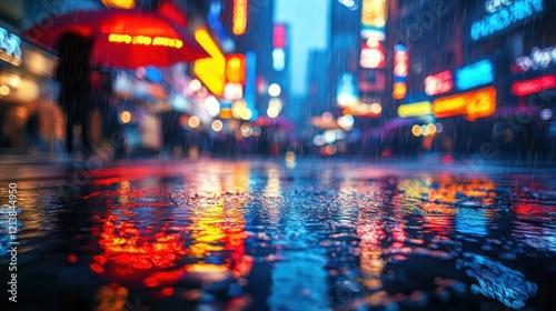 city, rain, night, reflections, street, urban, light, people, colourful, wet, atmosphere, neon, landscape, weather, urbanity, environment, mood, scenery, bustling, activity, travel, tour tourism, culture, lifestyle, evening, raincoat, umbrella, pavement, vibrant, nightlife, illuminated, photo, texture, design, beauty, motion, dynamic, ambience, serenity