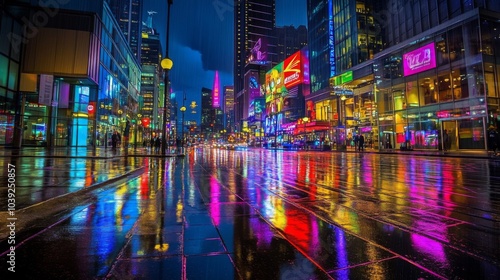 city, night, light, reflections, rain, urban, street, skyscraper, neon, colourful, building, ambience, culture, transportation, wet, scenery, nightlife, glowing, skyline, modern, vibrant, illumination, image, landscape, atmospheric, environment, pedestrian, road, commercial, metropolis, lively, city life, view, architecture, tour tourism, scenic, illuminated, travel, evening, digital, artistic, visual, aesthetic, shopping, entertainment, atmosphere, public