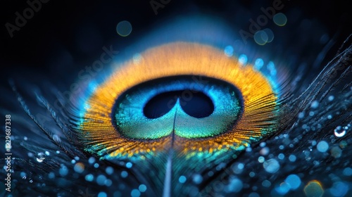 Vibrant close-up of peacock feather with intricate details