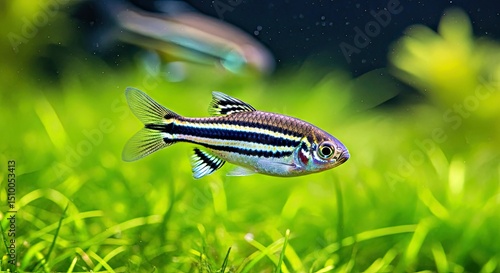 Vibrant Close-up Shot Showcasing a Striped Zebra Danio Fish