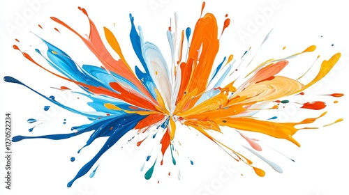 Vibrant Color Explosion with Splashes of Blue, Orange, and White