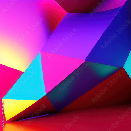 Vibrant colored 3d rendering geometric shapes background with perspective effect. Ai generated art.