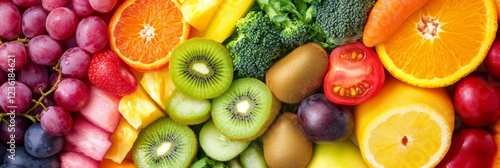 fruit, vegetable, healthy, food, diet, nourishment, vitamin, colourful, fresh, organic, natural, kiwi, orange, grape, mango, strawberry, tomatoes, carrot, broccoli, plum, lemon, lime, apple, pear, pineapple, healthy eating, wellness, lifestyle, delicious, sweet, juicy, crisp, vibrant, background, texture, pattern, design, photo, image, picture, graphic, illustration, art