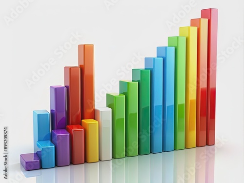 Vibrant colorful bars rise from a clean white background, showcasing categorized statistical data on x and y axes, highlighting trends and comparisons.