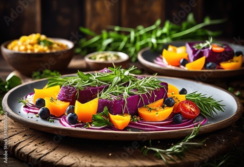 vibrant colorful food presentations featuring delicious healthy meal options fresh ingredients artistic arrangements, dishes, cuisine, vegetables, fruits