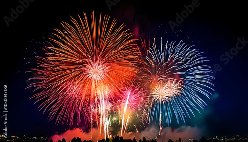 vibrant colorful lights light night sky explosive bursts flame smoke