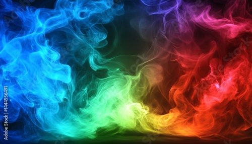 smoke, colourful, vibrant, swirl, dark, background, abstract, pattern, hue, rainbow, colours, light, motion, dynamic, cloud, design, artistic, digital, illustration, graphic, effect, high-coloured, cloud, black, texture, style, computer, rendering, image, creative, art