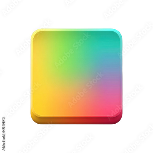 Vibrant colorful square block with gradient rainbow hues on a glossy surface, isolated on white background, abstract geometric design, modern digital art piece