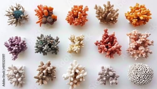 colourful, coral, collection, various, exotic, natural, array, colours, ocean, underwater, sea, biology, diversity, nature, aquatic, reef, research, arrangement, unique, display, vibrant, sample, white, background, diverse, study, marin, structure