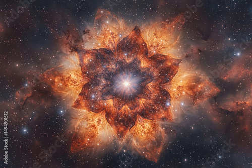 Vibrant cosmic explosion resembling a floral design captured in the vast universe