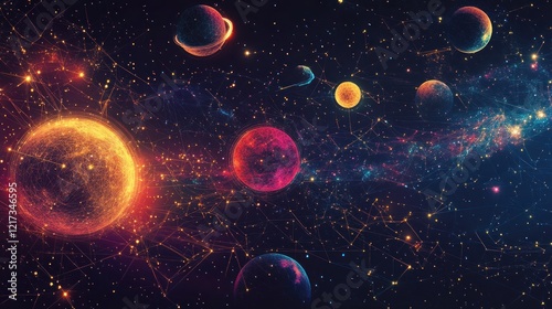 space, cosmos, universe, planet, star, nebula, galaxy, astronomy, celestial, solar, system, cosmic, vibrant, colourful, energy, light, glow, abstract, art, design, science, fantasy, futuristic, background, illustration, digital, image, pattern, texture, night, sky, dark, bright, red, orange, blue, purple, pink, gold, glistering, sparkle, mysterious, magical