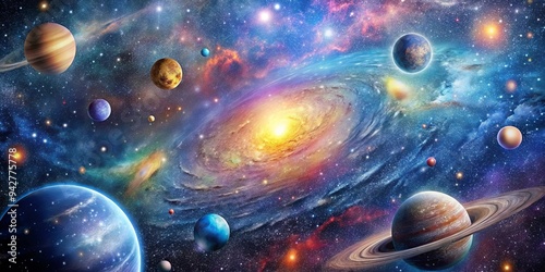 Vibrant cosmic universe filled with galaxies, stars, and cosmic phenomena